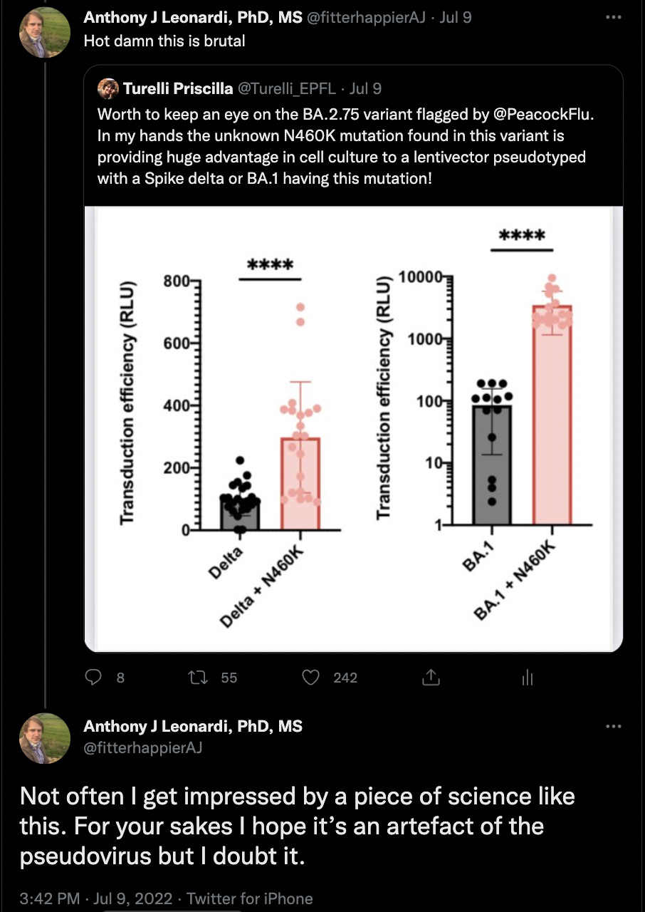 What does this mean clinically? One virologist claimed that an ultra-affinity spike would be incompetent because once bound to its target, it would not be able to function in the cell it had infected. However, I disagree, and you can see why in this preprint where pseudovirus with extreme ace2 affinity was still viable and fusogenic.